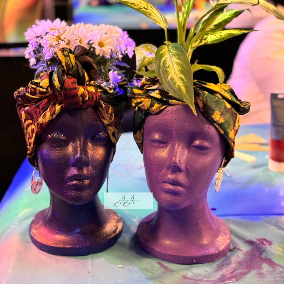 Beyond textiles, we build community. Our signature event HeadWrap & Paint, is more than a gathering- it's a cultural dialogue. We explore the differences between Ankara and Adire, unpack the history and stigma of gele head wraps and tignon. Also empower women to embrace head wrapping as both fashion and heritage.