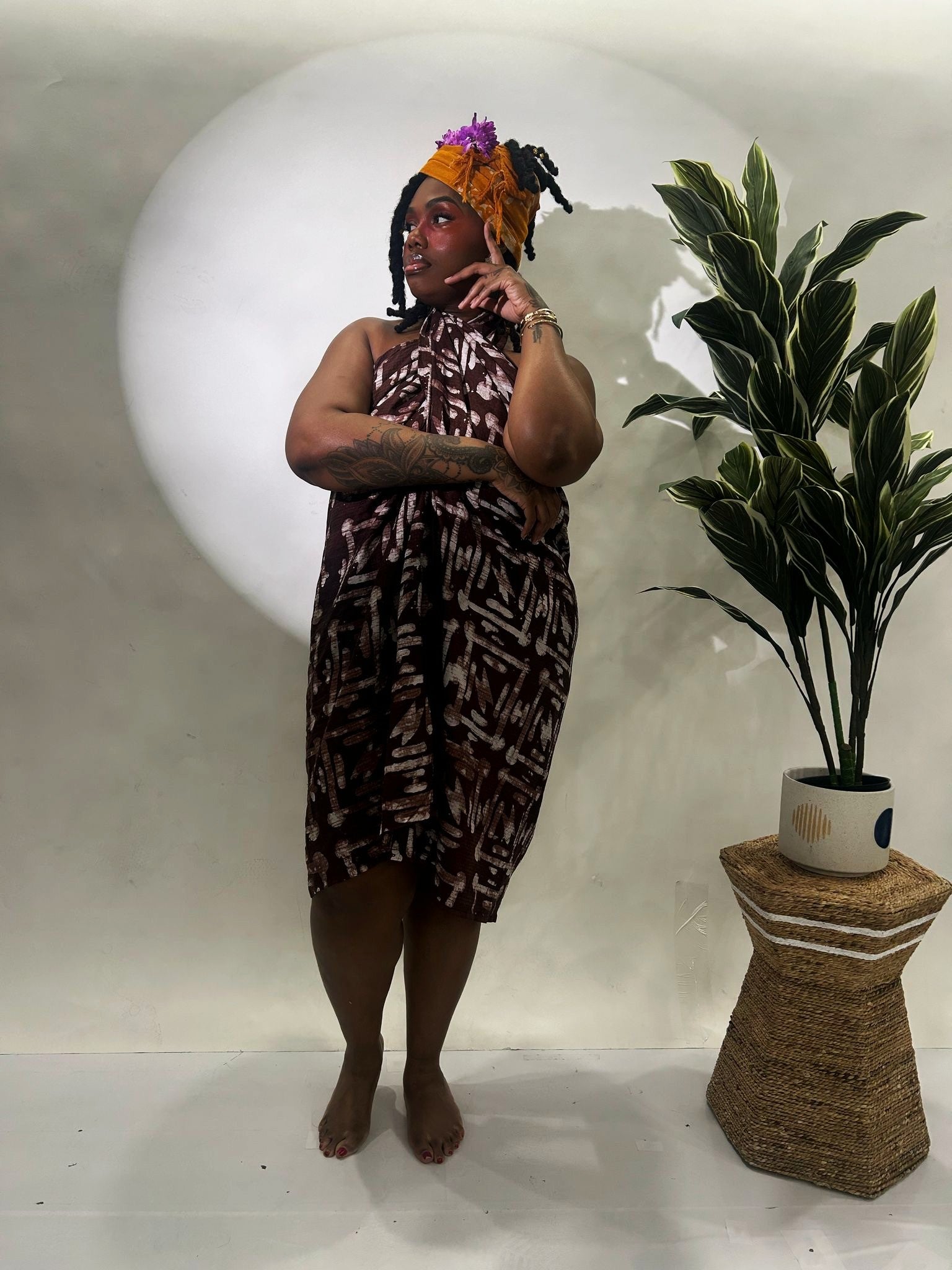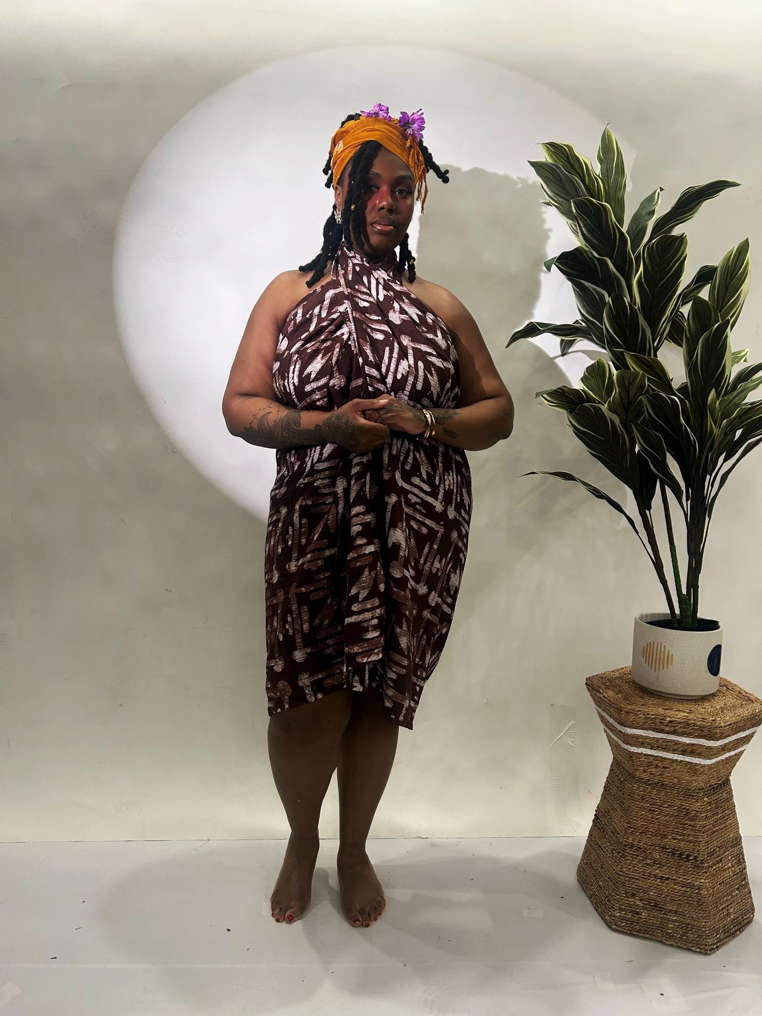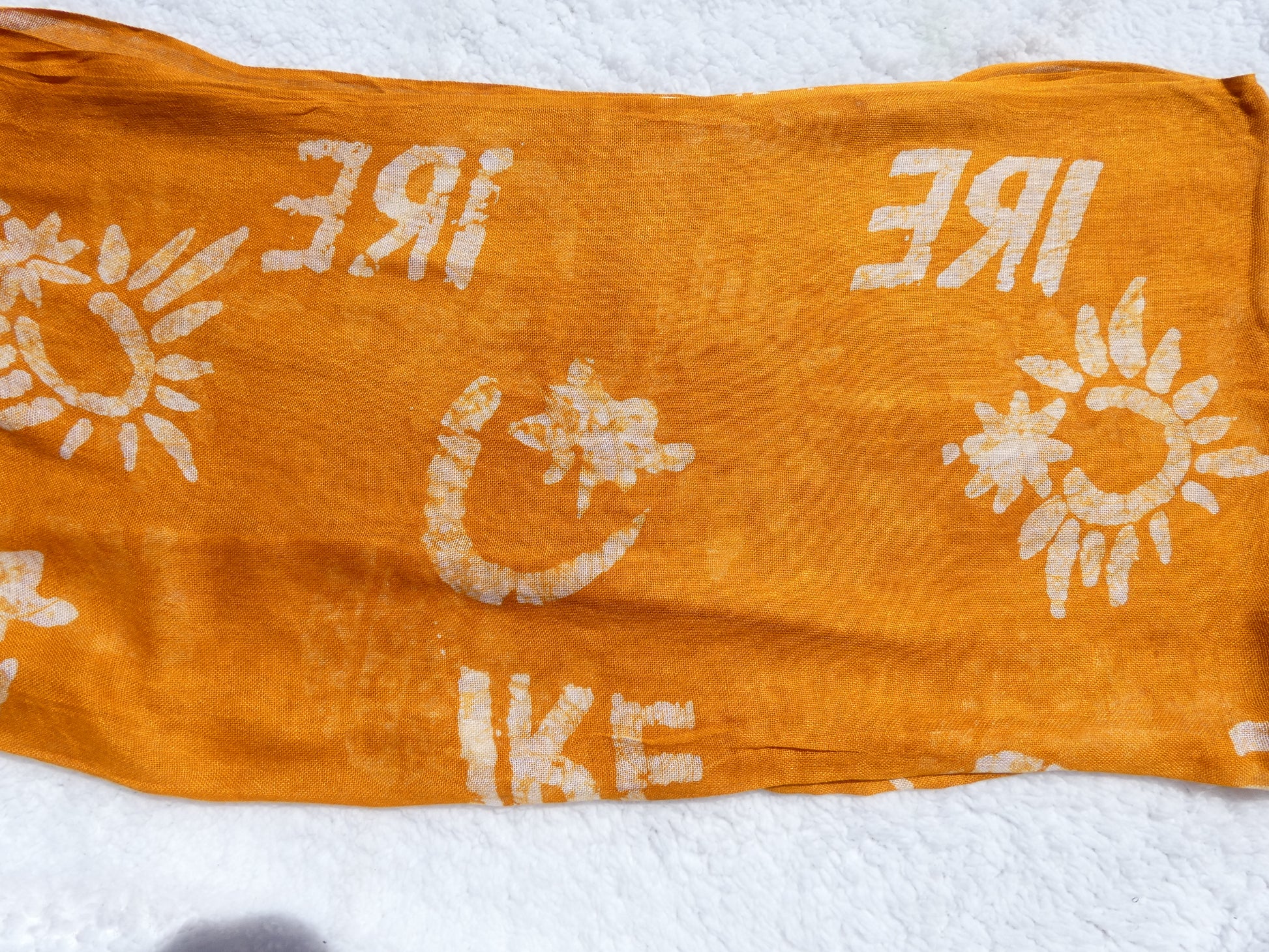 Crafted from 100% cotton, where every fold caresses the skin and moves like a whisper between dreams and waking. The calabash marks your vessel of abundance. While Ire, the energy of goodness and blessings flows through each thread. Designed for elegance, intention, and heritage. This scarf is more than an accessory. It is a ritual, a statement, a touch of luxury woven into every moment.